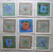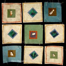 Digital photographs printed on silk, stitched