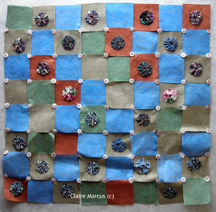 Mixed papers, repurposed cotton fabrics,